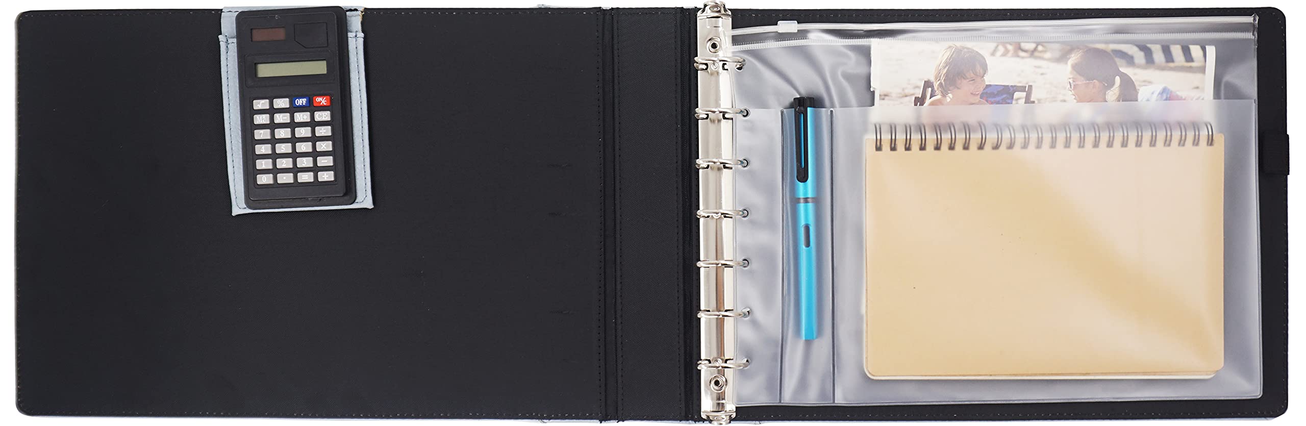 Amazon Com 9 X 13 Inch Executive Check Binder With Pen And Calculator 7 Ring With Zip Pouch Checkbook Portfolio With Pen And Calculator Holder 200 Sheet 3 Per Page Capacity For 600 Checks Blue Office Products