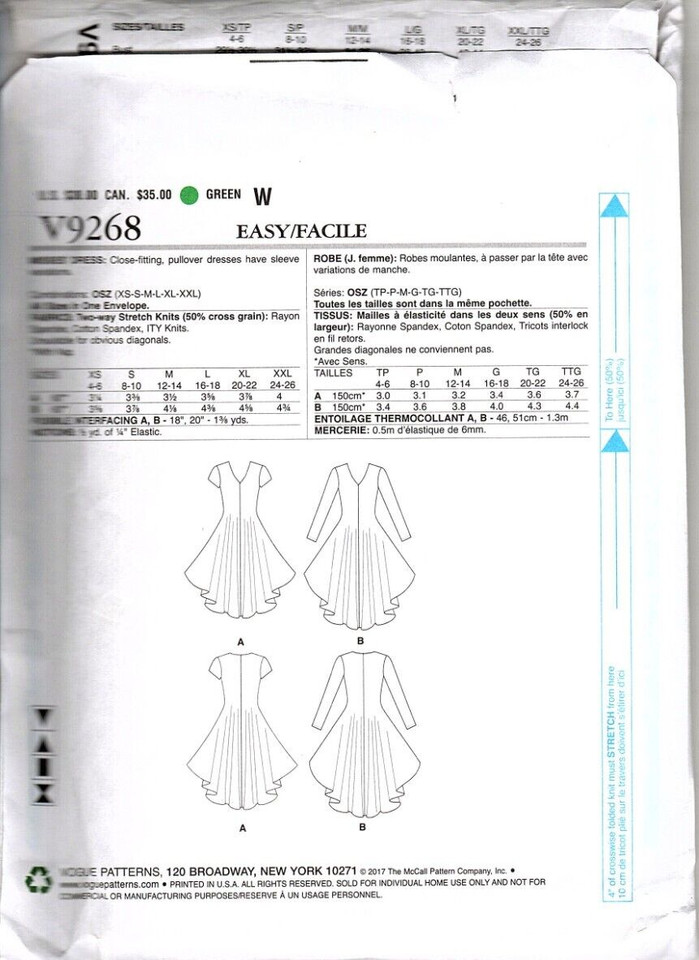 Vogue V9268 Kathryn Brenne Misses Dress Size 6 22 Uncut Sewing Pattern Ebay